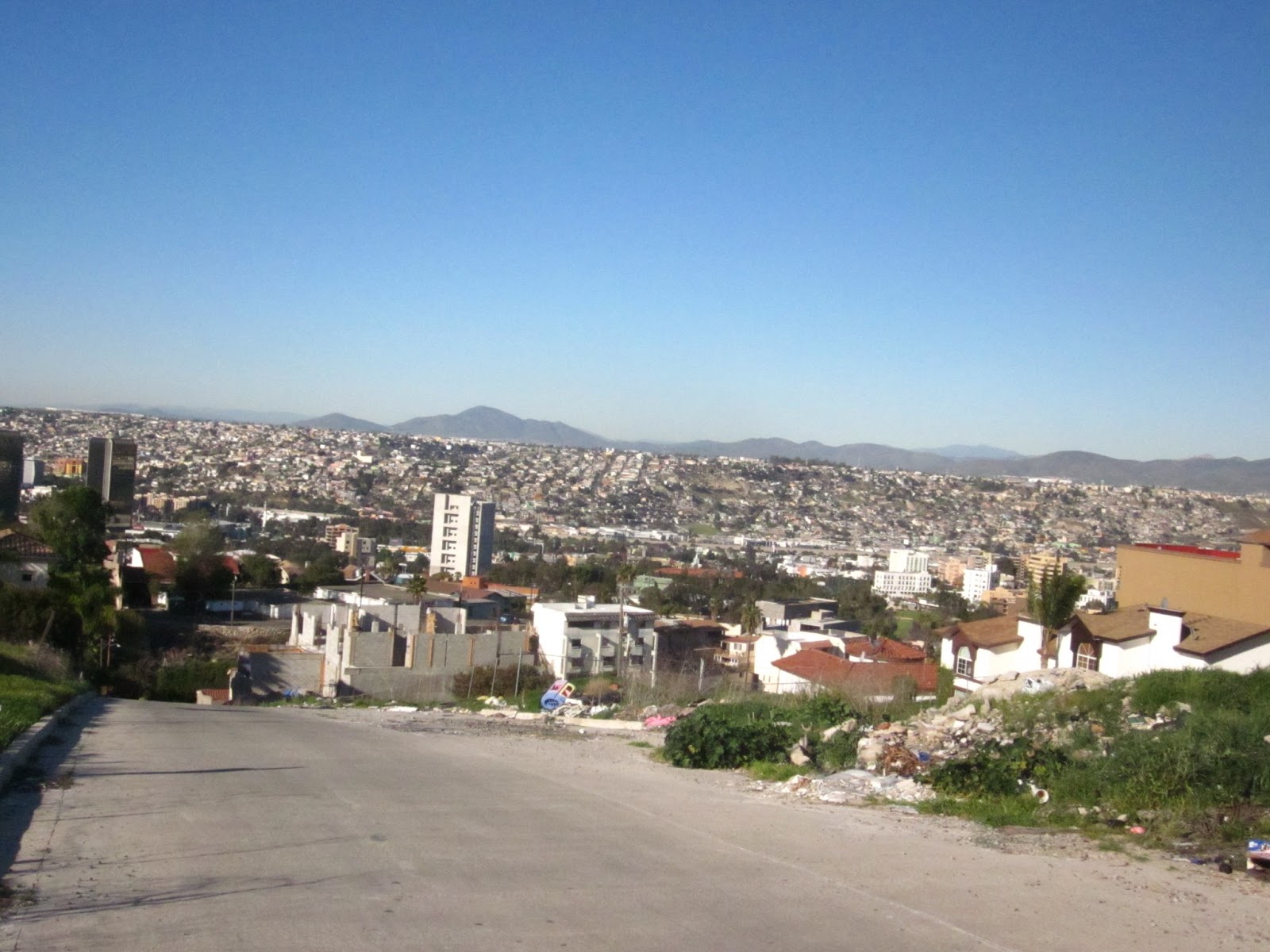On two different occasions, my Human and I have been able to celebrate a few days of some early Spring/Summer weather by taking hardcore strolls through the more ritzy parts of Tijuana. This particular area of the city was where all the gangster related violence was happening a few years ago. But that isn’t why the strolls are hardcore. Now, there is a quiet in the hills, fresh air, pizza bike deliveries, construction crews remodeling homes and folks in vehicles zipping along the wild curvy roads. These are some fantastic hills to walk- if you are up to the challenge of fighting gravity. And being alert to motorists. The inclines are intense most of the way and we would see the road stretching every more steeply before us then jokingly call for our Sherpa to carry us the rest of the way.